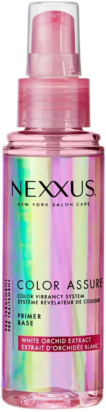 Nexxus Color Assure Pre-Wash Primer : Nexxus Spray Color Assure Pre Wash Primer 3 3 Oz Ingredients And Reviews / This system works to replenish the proteins damaged hair loses from heat styling, coloring and bleaching.. I need to color my hair frequently to cover up those pesky grays so i am always on the lookout for products that can help keep my hair color from fading away. After pantone declared radiant orchid as its color of the year for 2014, the orchid flower began popping up in beauty products. Repelling water to colored hair remarkably vibrant. Rated 5 out of 5 on makeupalley. Vibrancy retention conditioner 9ml or 0.3oz